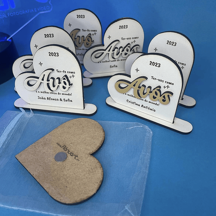 Coração Avós, em madeira com nome e data personalizáveis.