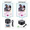 É possível usar como coluna de musica, e o flash de luz fica consoante a batida da música ou constante. É possível configurar a cor, além das alterações normais da fotografia, data e a música.